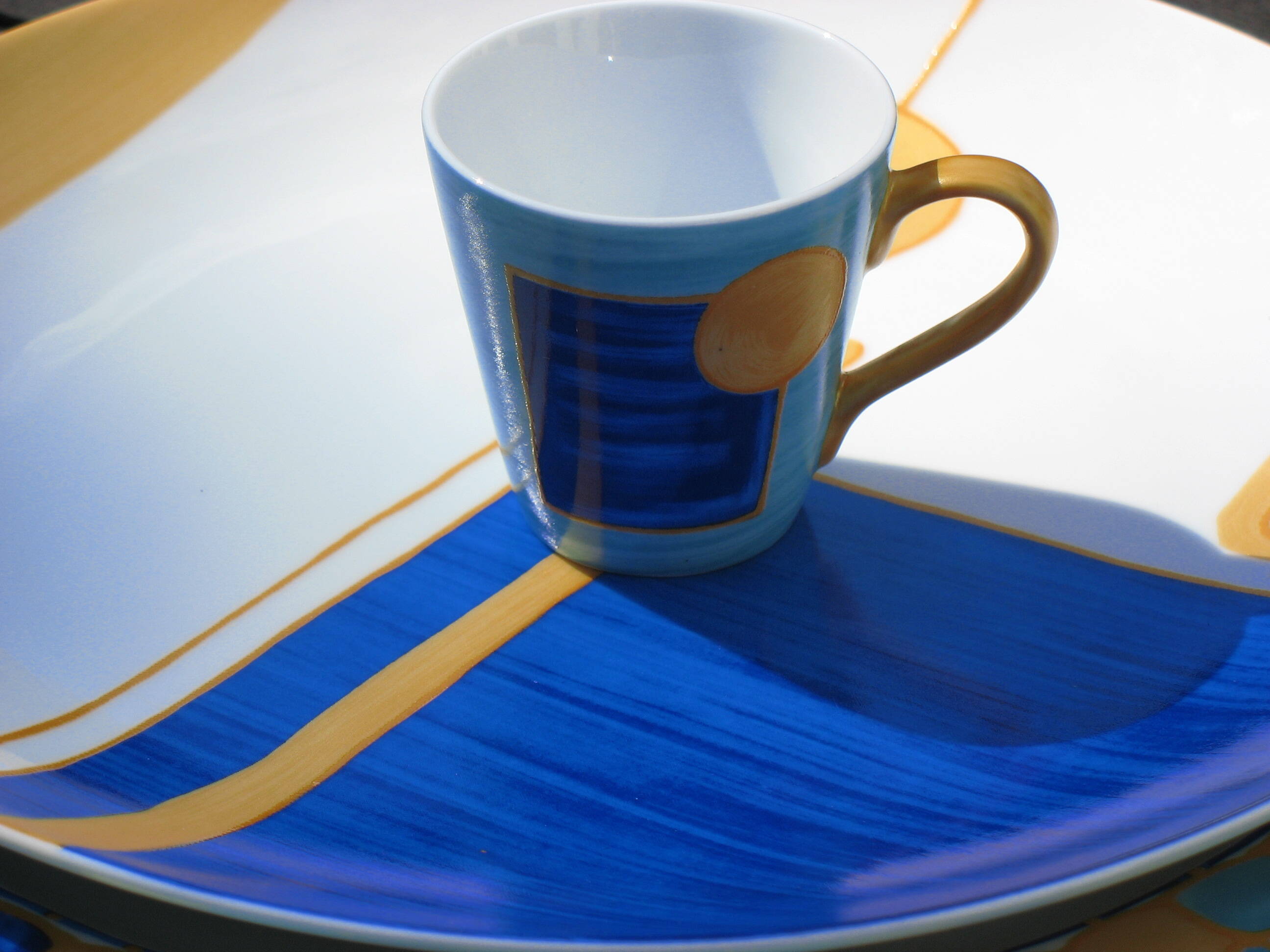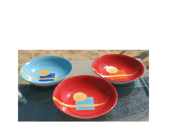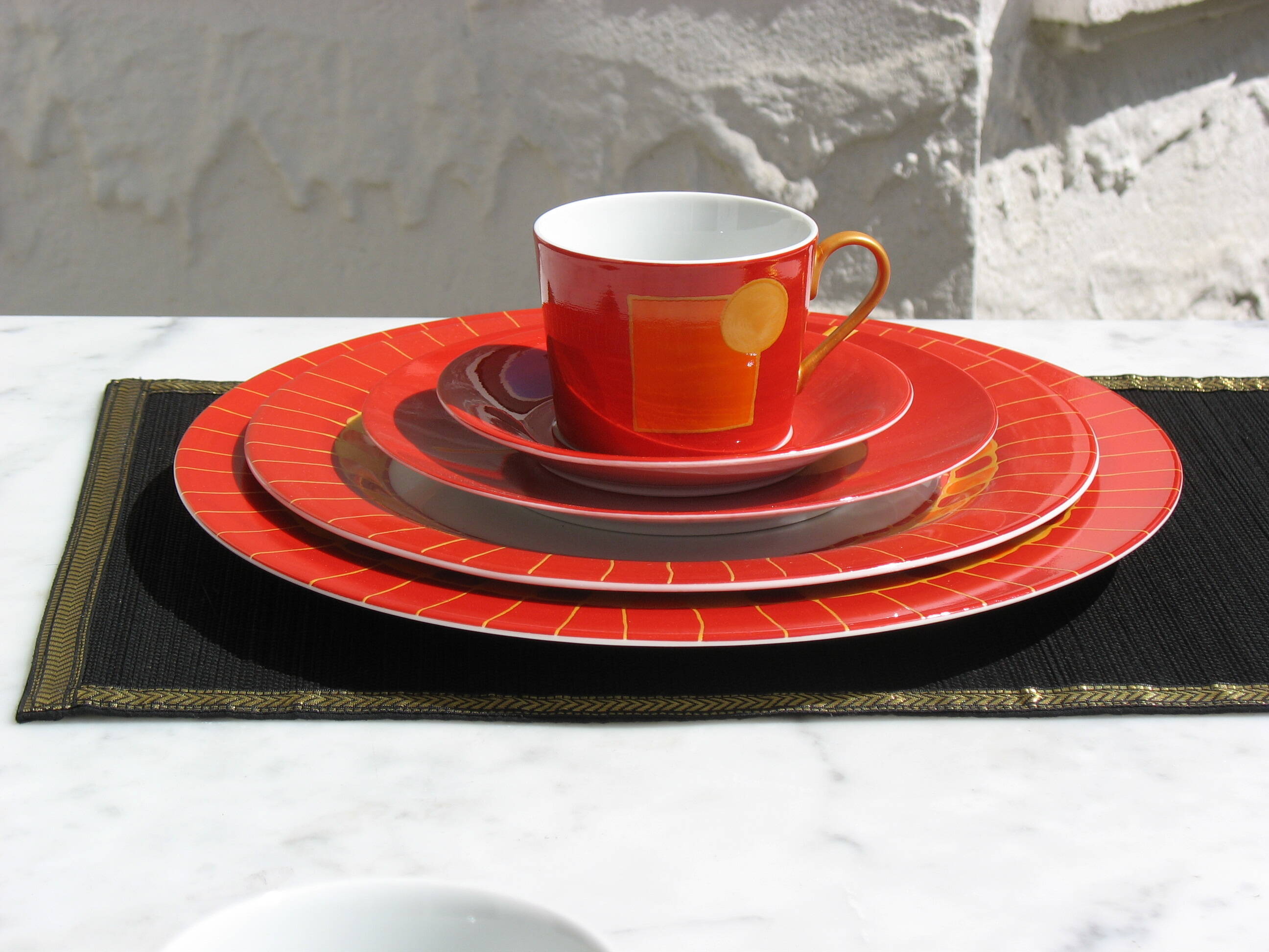Passionnées par la correspondance des couleurs, et Inspirées par Kandinsky, Klimt, Klee, elles voulaient de l'art dans l'assiette avec des motifs géométriques, des couleurs et de l'or. Et surtout un décor dessiné et peint à la main ou le geste libre de l'artiste avec un savoir- faire unique dégage émotion et subtilités.