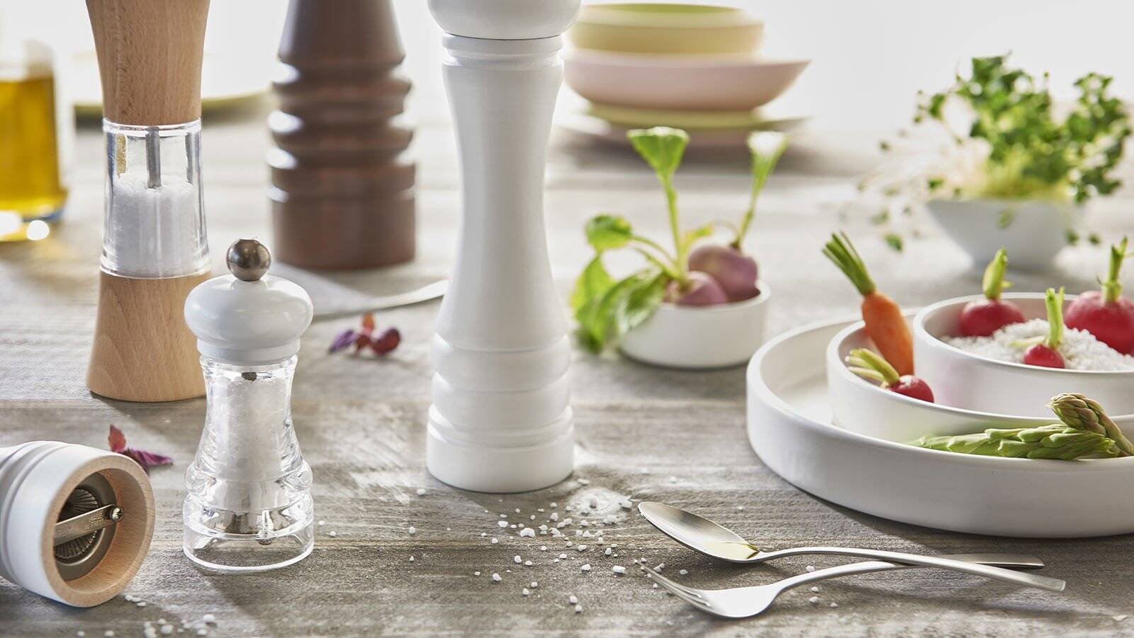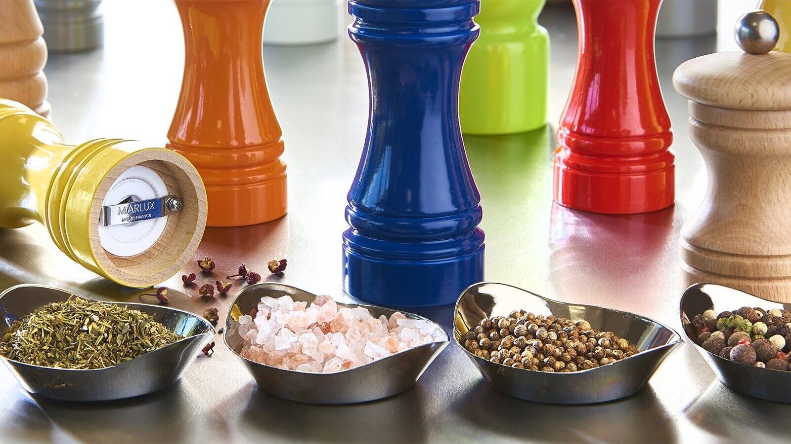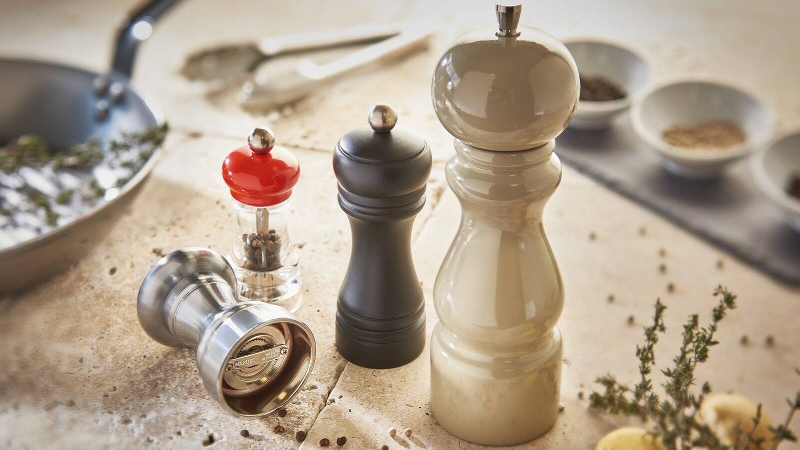 Pour savourer pleinement les arômes des condiments, vous pouvez utiliser, en cuisine comme à table, un moulin à poivre, sel et épices.