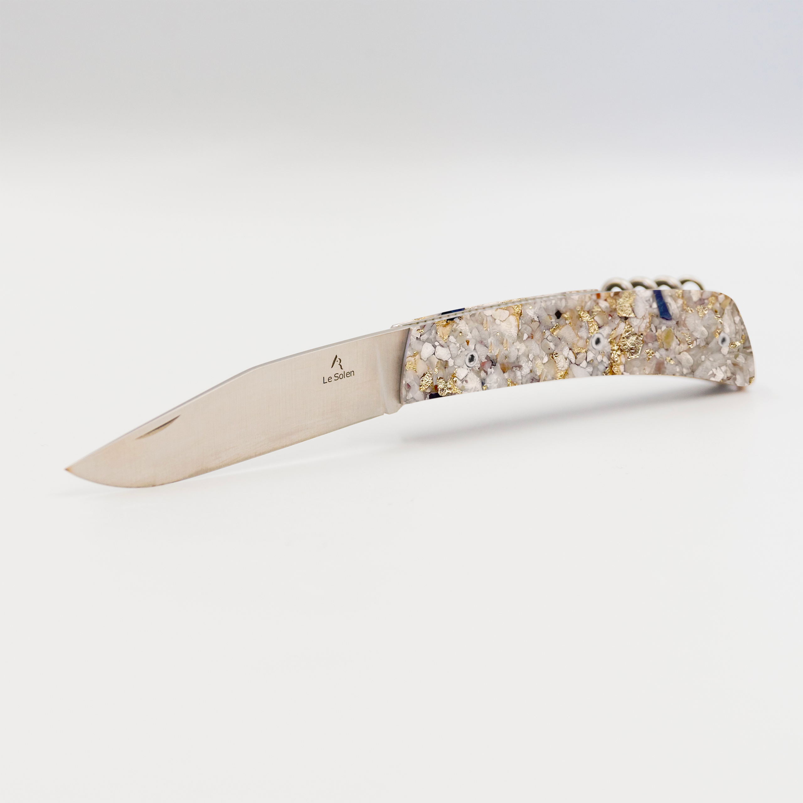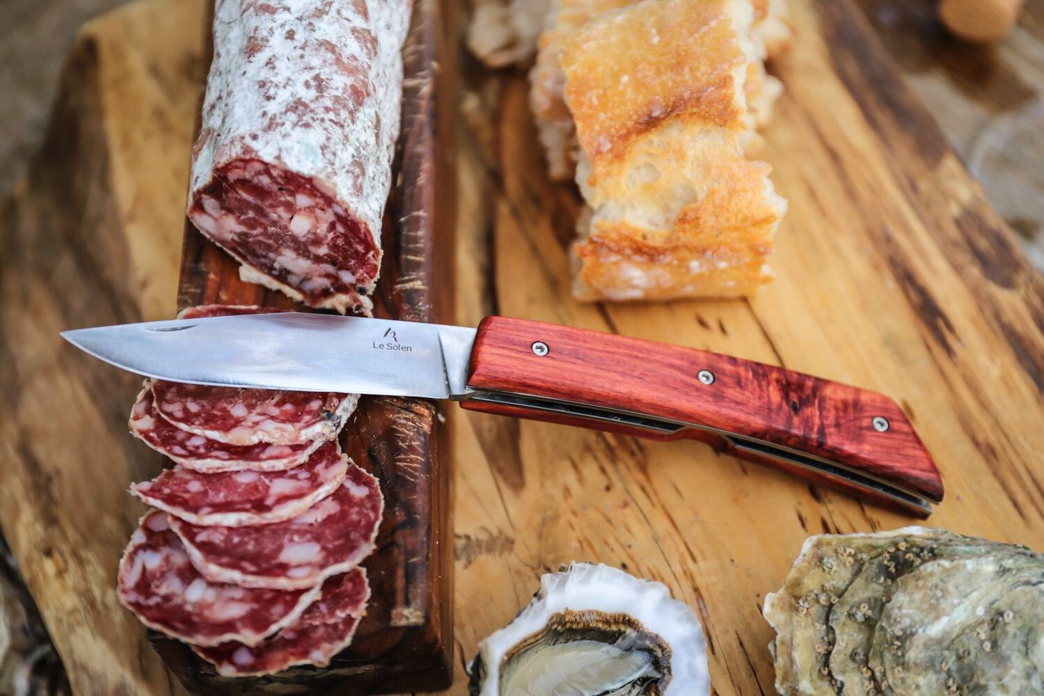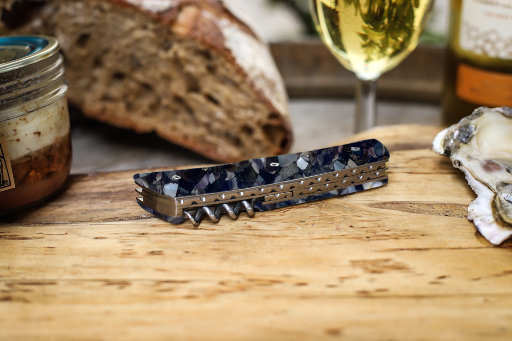 Je m’appelle Clara LARRIEU, j’ai 31 ans. Je n’étais pas destinée à devenir créatrice coutelière mais après plusieurs années à travailler dans le monde de l’audiovisuel à Paris, j’ai pris la décision de tout quitter et d’entamer une reconversion professionnelle. L’envie de revenir vivre près de mes racines dans le sud-ouest de la France devenait trop présente dans mon quotidien. J’ai toujours connu mon père avec sa collection de couteaux, il a toujours aimé ça. L’idée de créer un couteau régional vient d’ailleurs de lui, à la base. Mais, faute de temps, il n’a jamais pu se consacrer pleinement à ce projet. Forcée de devoir me réinventer, j’ai moi aussi commencé à m’intéresser à la coutellerie. J’avais envie de revenir à des valeurs qui me correspondaient plus, j’avais envie de créer et de laisser mon imagination guider mes gestes. J’ai toujours été attirée par le monde de l’artisanat et j’avais la sensation que mon épanouissement professionnel se trouvait là.