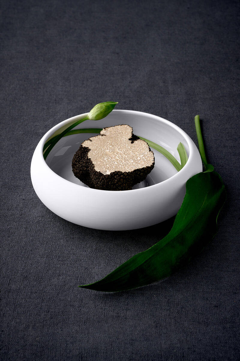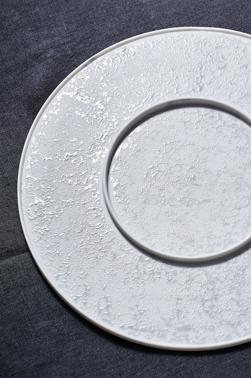 - Shima, tel un jardin zen, contraste la force minérale de la porcelaine de Limoges avec la fluidité de ses lignes épurées, invitant vos créations culinaires à fleurir à sa surface