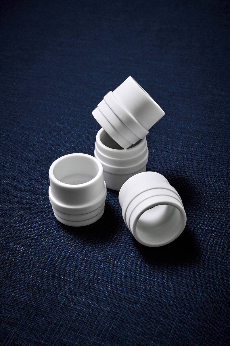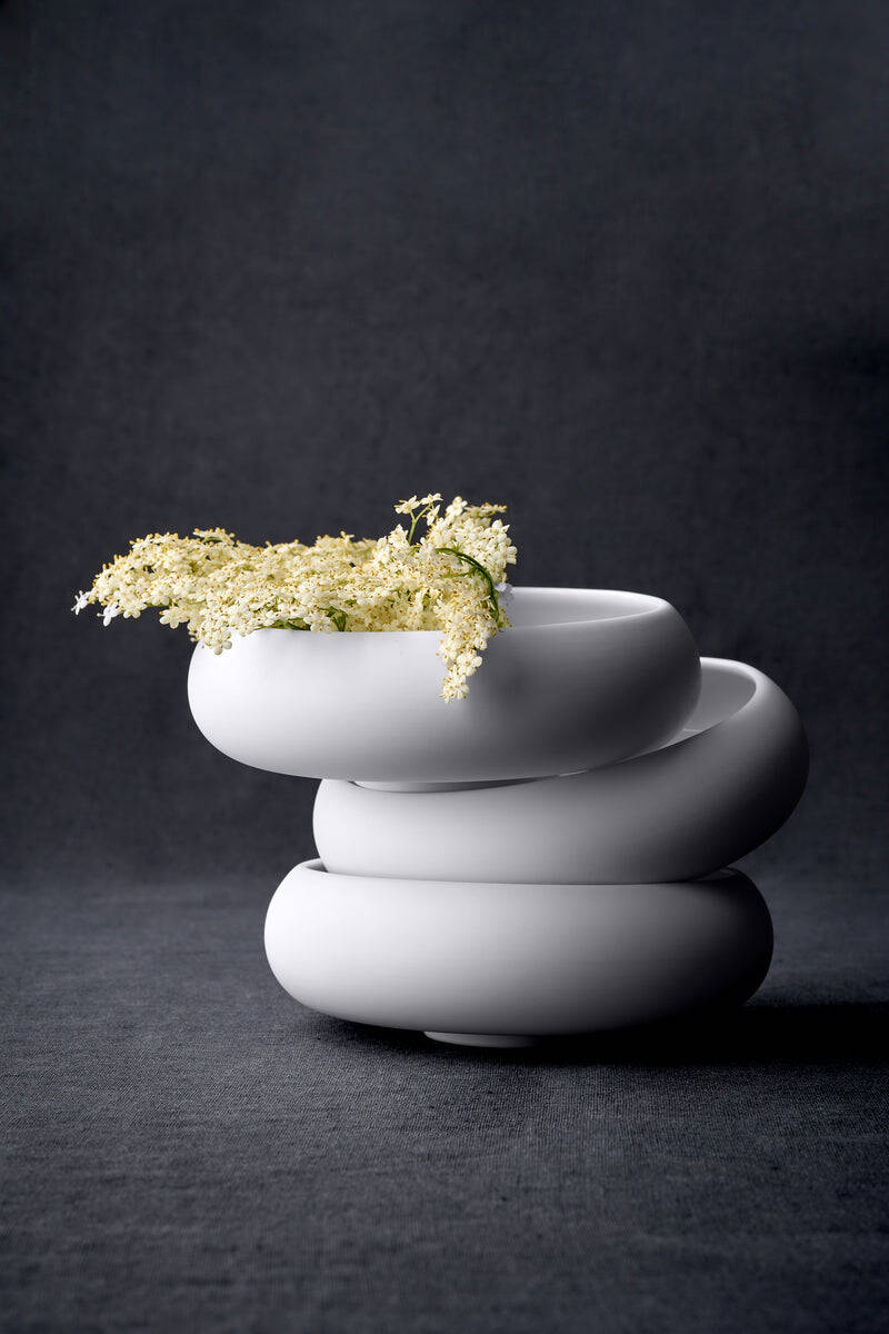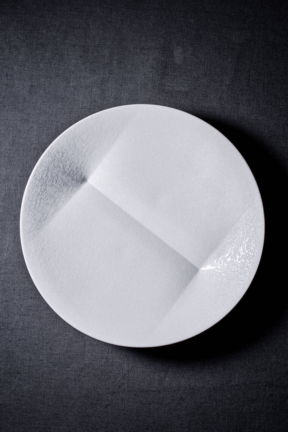 - Origami, hommage au papier plié, marie rigueur du pliage et maîtrise du geste avec son biscuit mat et son émail blanc brillant qui captent la lumière et révèlent toute l’élégance de cette construction délicate