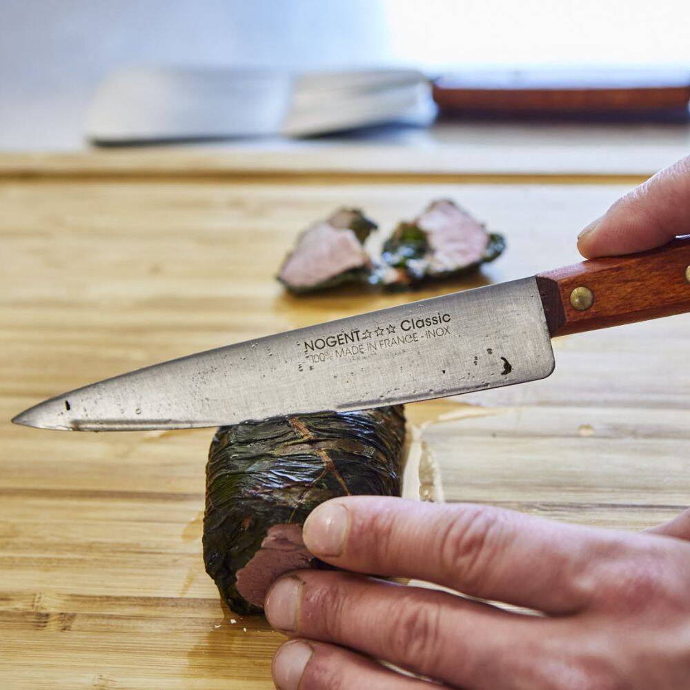 Tout commence en 1923, dans un atelier de Biesles, où Louis André, fils d’artisan, façonne ses premiers couteaux avec une conviction simple : créer des outils précis et durables. Depuis, les gestes se transmettent, les savoir-faire s’affinent, mais l’âme reste intacte. Chaque couteau Nogent* porte en lui la mémoire d’un artisanat exigeant et la promesse faite à ceux qui cuisinent chaque jour. Pensés pour durer, ils accompagnent les petits gestes du quotidien comme les grandes tablées de fête. Ils s’offrent, se partagent, se transmettent, devenant plus qu’un outil : un compagnon de vie, chargé de souvenirs. Aujourd’hui encore, la même exigence anime nos ateliers. Labellisée Entreprise du Patrimoine Vivant, Nogent* continue d’écrire son histoire : celle d’une coutellerie française, belle, responsable et faite pour durer.