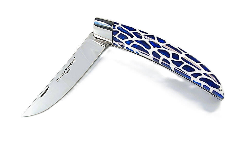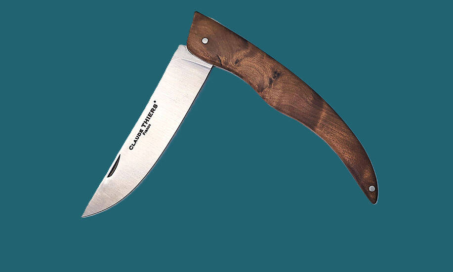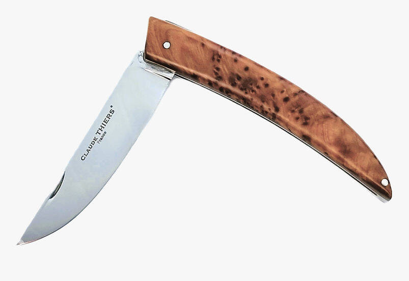 Dans la lignée de cette quête d’excellence, le couteau pliant  CLAUDE THIERS® incarne une modernité audacieuse. Son manche décliné en différents matériaux, évoque les terres volcaniques encore incandescentes. Extrêmement fin et léger, il dissimule dans ses 80 grammes une lame en acier X50CrMoV15, gage d’une coupe précise et durable. Un bijou de poche, pensé pour l’usage quotidien comme pour l’exceptionnel.